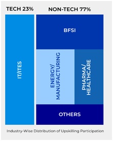 77% of learners who upskilled in 2025 were employed in non-technology sectors, including BFSI, manufacturing, energy, pharma, healthcare, and other traditional industries, while 23% were working in IT/ITES organisations.