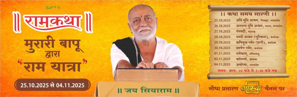 NEW DELHI | 22nd OCTOBER 2025: Pujya Morari Bapu, the revered spiritual leader and exponent of the Ramayana, is set to embark on yet another extraordinary spiritual odyssey — the Ram Yatra, from 25th October to 4th November 2025. This divine journey will retrace the sacred path of Maryada Purushottam Lord Ram, connecting the holy sites associated with His life and teachings — from Chitrakoot to Rameshwaram and onward to Colombo, culminating in Ayodhya. This journey will bring out the quintessential essence of Sanatana Dharma, the glory of Lord Ram’s name along with it being a journey that unites India and strengthens its traditions.