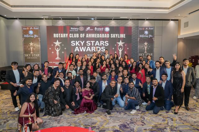 AHMEDABAD 23 June 2025 The Rotary Club of Ahmedabad Skyline, Gujarat’s largest and India’s fourth-largest Rotary club, hosted its prestigious annual “Skyline Sky Star Awards 2025” gala at the luxurious Crowne Plaza Ahmedabad. The event was a grand celebration of excellence, impact, and leadership, designed with the grandeur and energy of a Bollywood Filmfare-style awards ceremony.