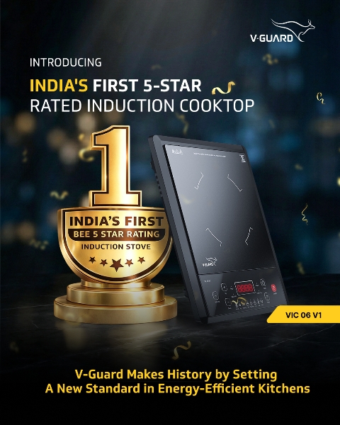 INDIA | 12th JANUARY 2026 — V-Guard Industries Limited, India’s leading consumer electrical and electronics brand, has achieved a landmark milestone with its Induction Cooktop Model VIC06V1 becoming India’s first induction cooktop to receive a 5-Star (★★★★★) energy efficiency rating from the Bureau of Energy Efficiency (BEE).